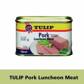₱170Tulip Pork Luncheon Meat has a balanced meaty flavour and is great in rice and noodle dishes. It is made from 100% Danish Pork and 100% imported from Denmark. No MSG added.here's only one way to eat luncheon meat and that's fried either pan-fried or deep-fried! ;) It's usually just pan-fried to get a nice crisp on the surface of the luncheon meat and that's how most of us would cook it at home (cut into half-moon slices).Tulip Danish pork Luncheon Meat is used on crackers white bread as snacks or served as dinner parties as canape.TULIP Pork Luncheon Meat (S) 200g